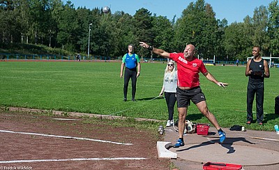 Patrick Lindfors ställde upp i veteranklassen i Nynässpelens specialgren ”Superkula”. Grenen är en minimångkamp i kula där deltagarna får nio stötar vardera. Tre stötar med en ”vanlig” kula på 7,26 kg, tre stötar med 9kg och tre stötar med en monsterkula på 12kg. Den längsta stöten med varje vikt läggs ihop till ett totalresultat. För Patricks del denna dag blev det tre övertramp med 7,26-kulan och därmed var chanserna att vara med och slåss om segern bortblåsta. Men publiken bjöds ändå på en bra tävling med härlig stämning och många fina resultat.
